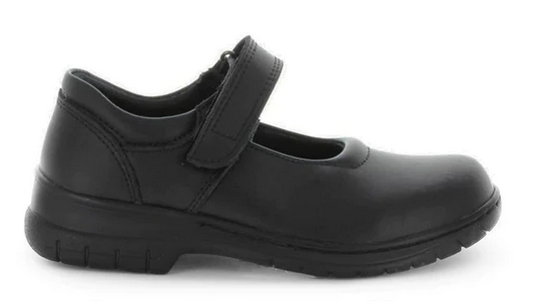 Mary Jane style with velcro fastener. Multi fit innersole and orthotic friendly. Smaller sizes only. Leather.